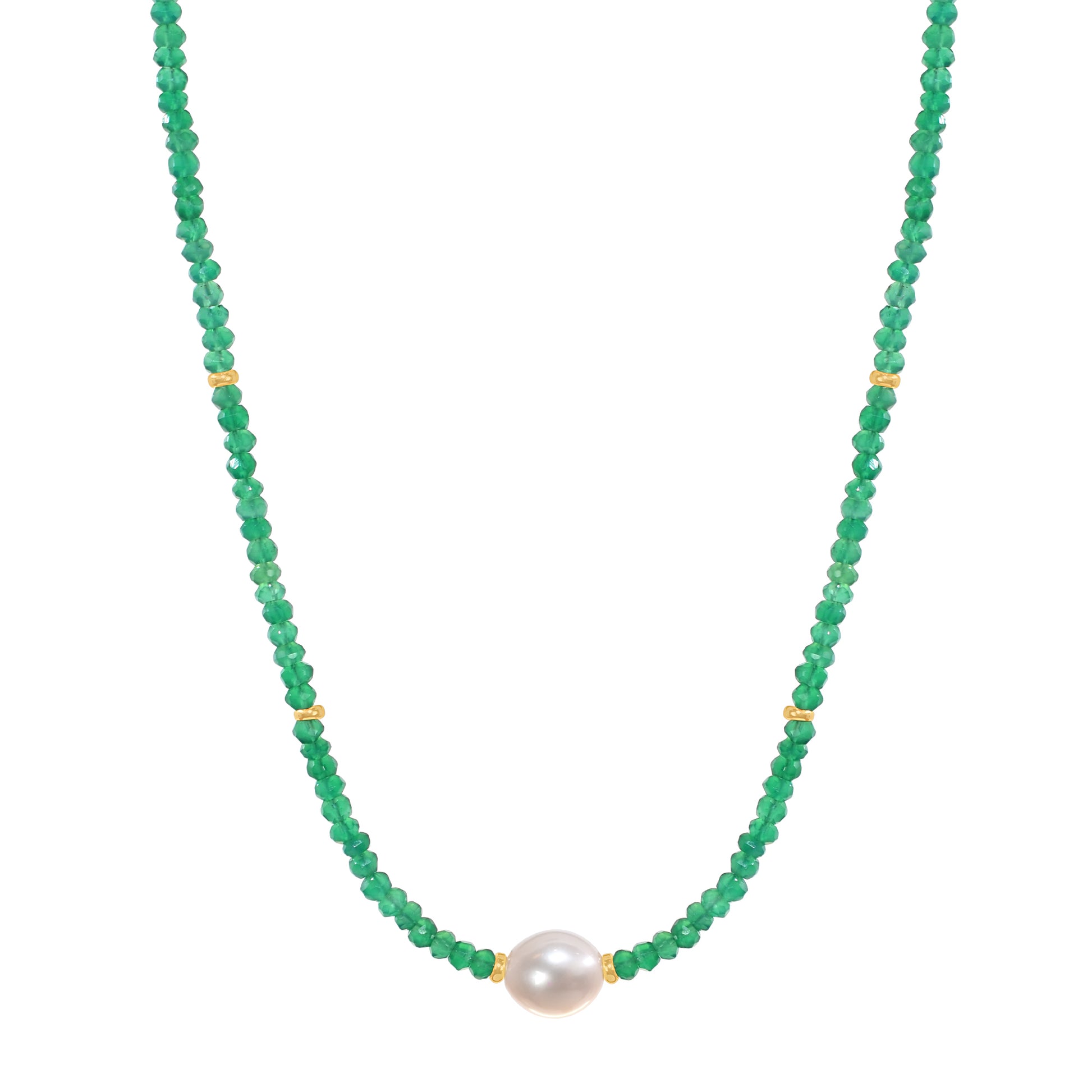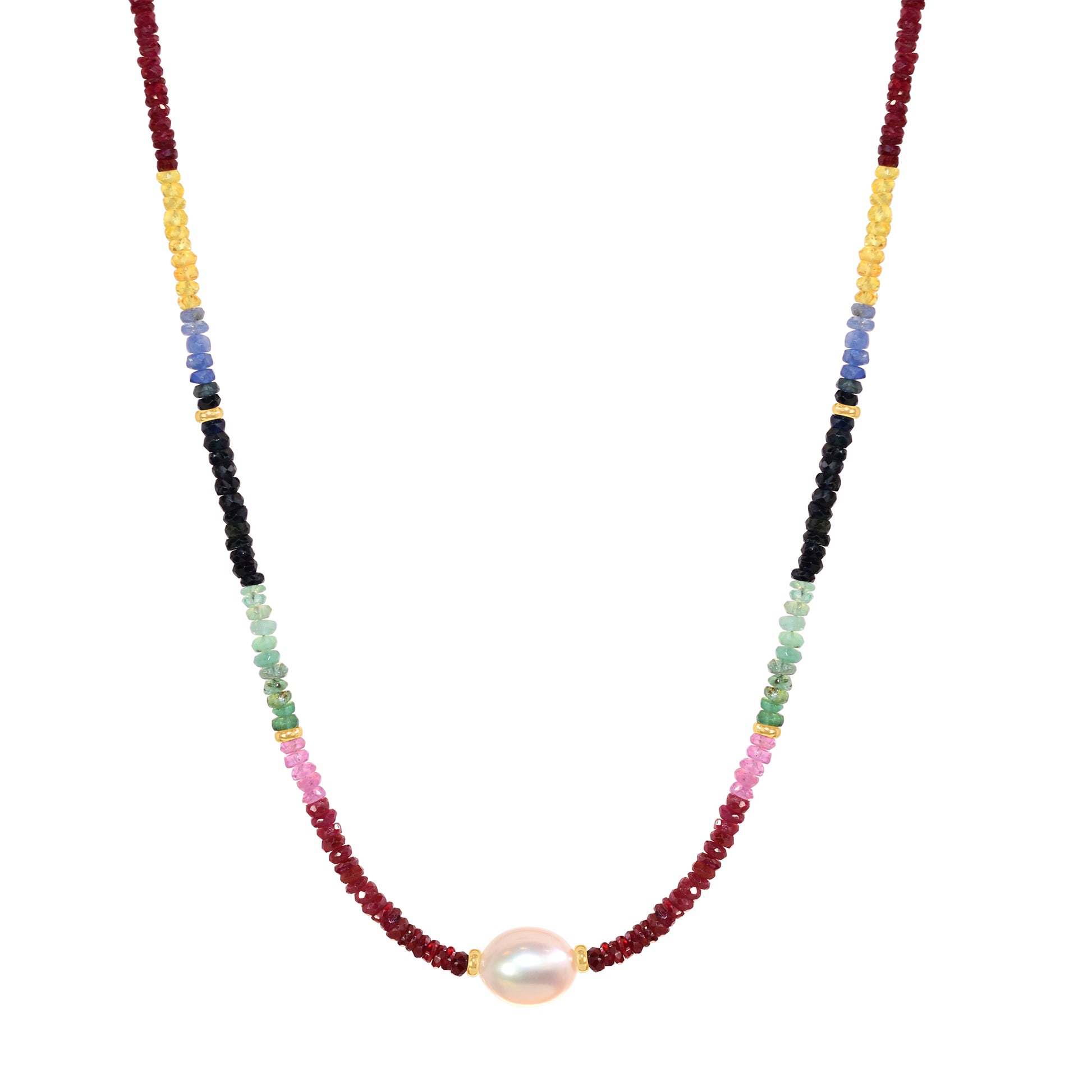 Indulge in this exquisite 14k gold necklace featuring a gemstone of your choosing and a luminous freshwater pearl at its center. Embellished with gold roundels and detailed with a spring ring closure, this ornate piece radiates sophistication and luxury. Transform your look with opulence and timeless elegance.