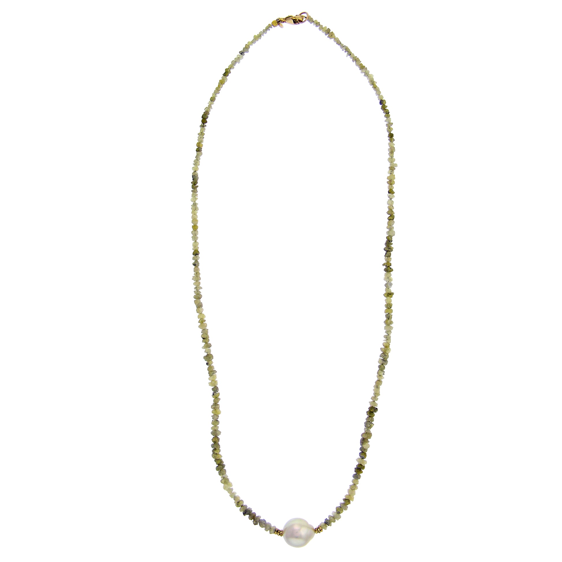 Elevate your jewelry collection with our 14k Yellow Gold Champ South Sea Pearl Rough Diamond Necklace. Expertly crafted, this 17" necklace boasts a stunning South Sea pearl and rough diamond pendant. With a secure lobster clasp, this piece is perfect for both special occasions and everyday wear.