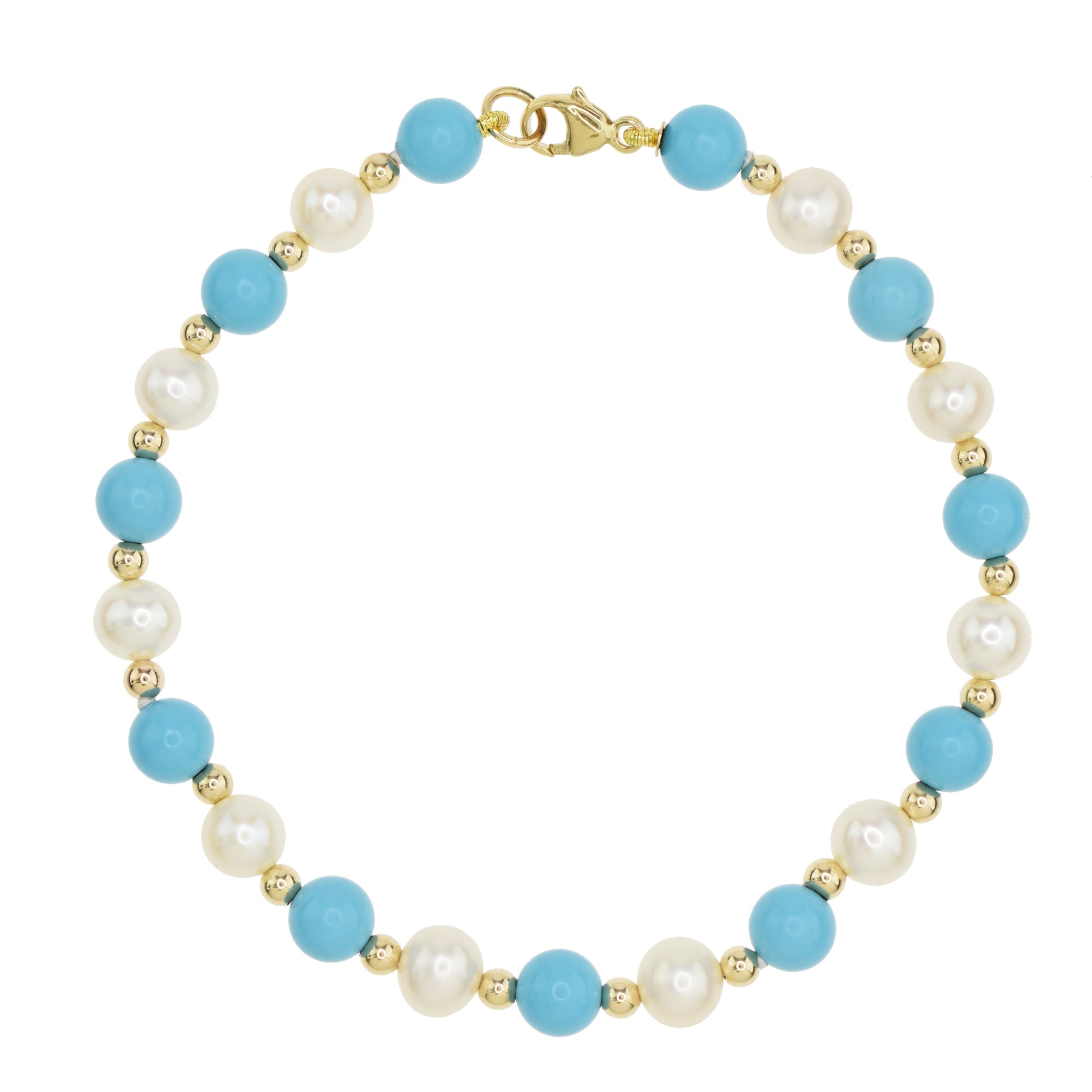 14KY PEARL TURQUOISE BRACELET 6 MM 7.5"
