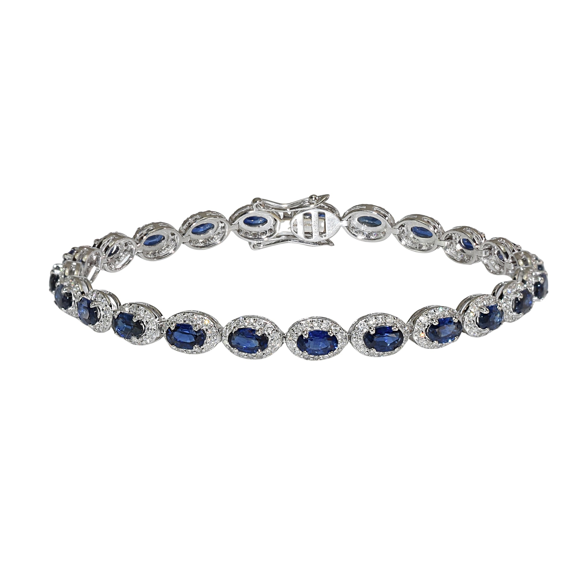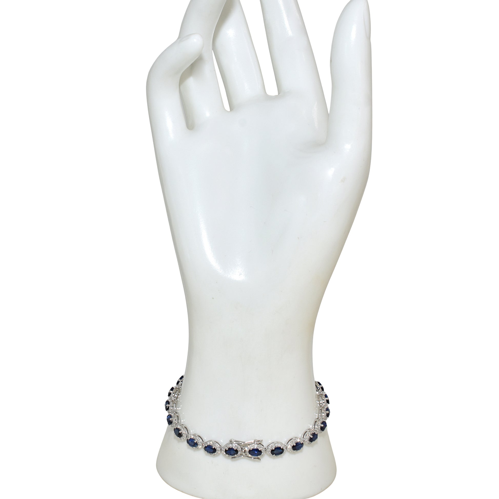 Elevate your elegance with this 18k White Gold Sapphire Diamond Tennis Bracelet. Crafted with brilliant diamonds and rich sapphires, it offers timeless beauty and refined sparkle. Its sleek design ensures comfortable wear, making it the perfect accessory for both everyday luxury and special occasions. Enhance your style with a bracelet that radiates sophistication and lasting allure.