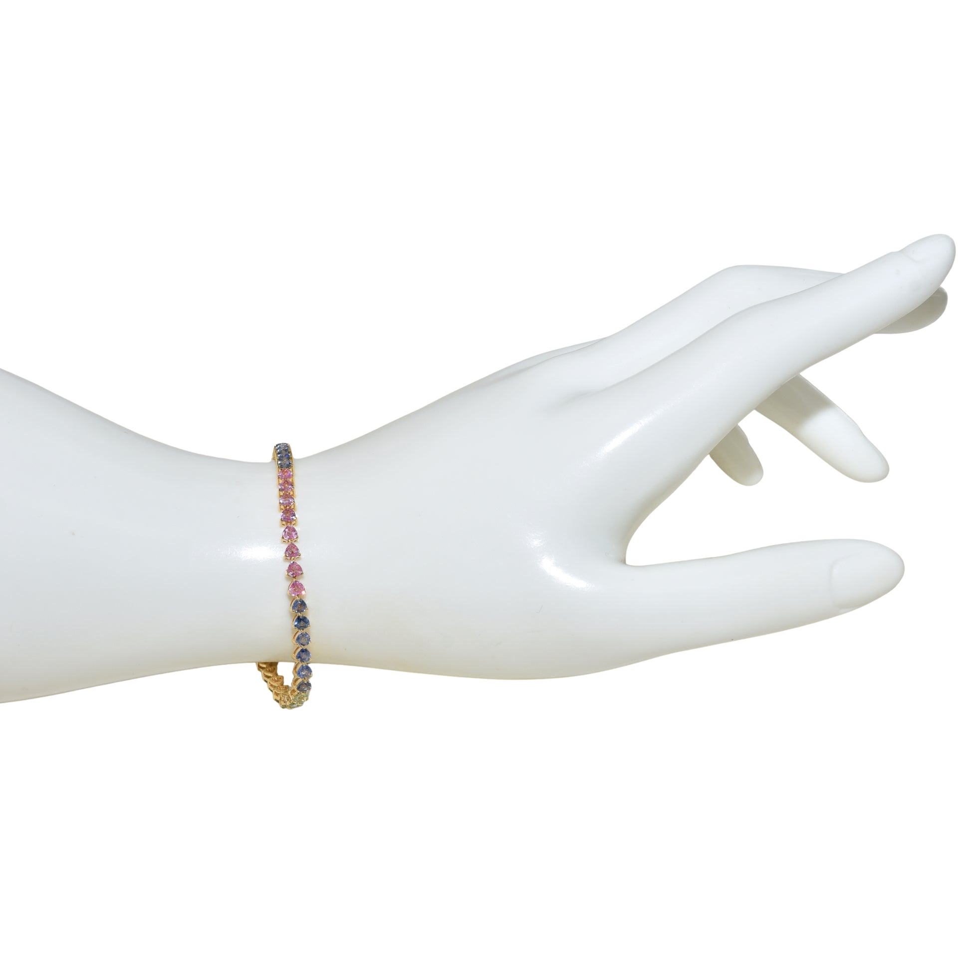 Elevate your elegance with this 18k Multi Sapphire Tennis Bracelet, featuring a stunning array of vibrant sapphires set in luxurious 18k gold. Its timeless design offers versatile beauty suitable for any occasion, while the secure clasp ensures comfortable all-day wear. Experience the perfect blend of color and craftsmanship that makes a bold yet refined statement.
