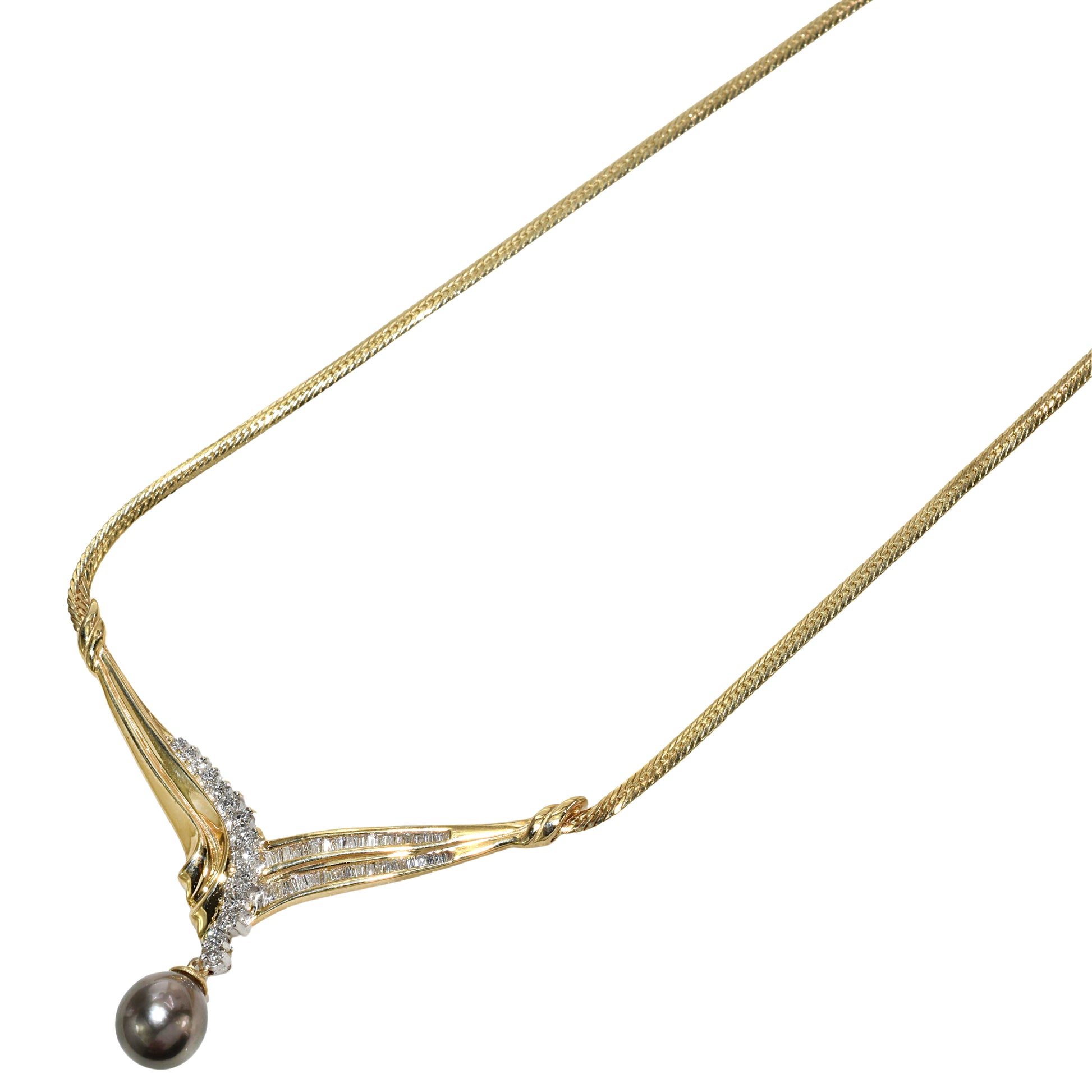14k Black Tahitian Baroque Pearl Diamond Necklace