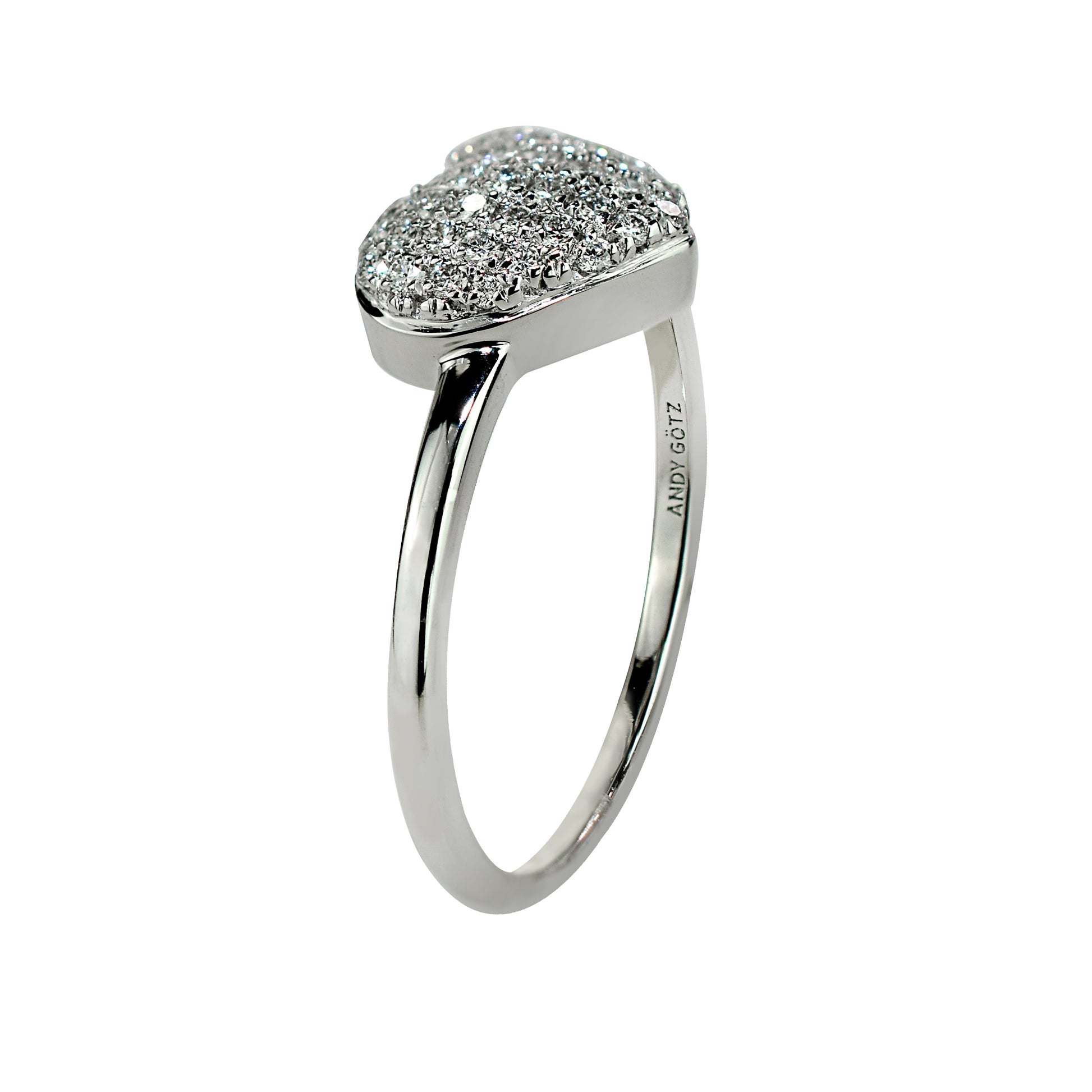 - High-polished 14-karat white gold heart ring perfectly set with VS Diamonds. Sensitive-skin friendly and won't tarnish.